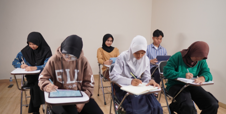 Ruang kelas full AC, Wi-Fi kencang, dan area diskusi yang nyaman.
